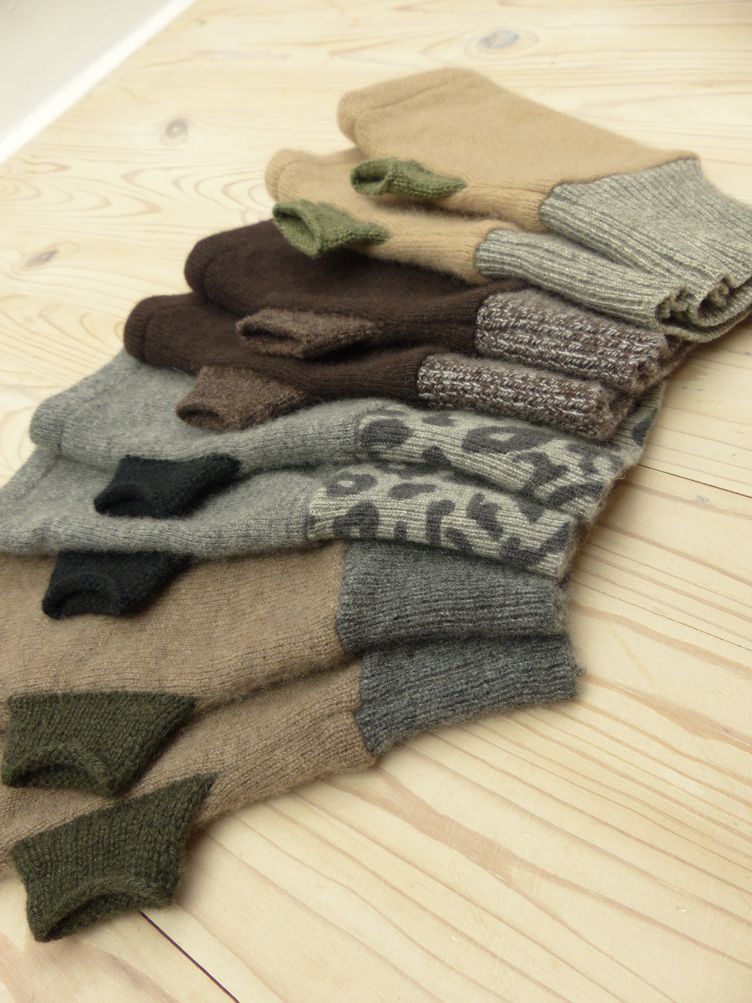 In practise this means we buy yarn from UK and Ireland based companies, upcycle cashmere sweaters and use 'deadstock' yarn. We take pre-owned cashmere jumpers, carefully deconstruct them, wash and then steam iron to ensure all pieces are clean and moth-free. We then use these pieces as 'fabric' to make our gloves, scarves and cushion covers. We use 'deadstock' yarn which is yarn that is surplus from fashion brands or textile mill's production process due to overproduction.